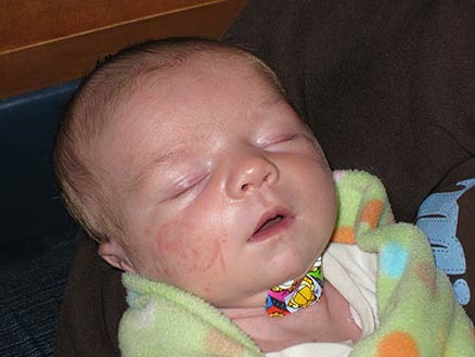 As proof of his good sleeping, you’ll notice that a lot of the pictures we get of him involve closed eyes. Here’s another. Poor little guy has some nasty marks on his face thanks to the stickers they used to keep his feeding tube in place.