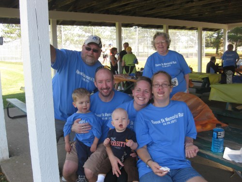 We sold t-shirts to those who wanted to walk/run in memory of Mom. We were able to sell a lot of shirts but still have a lot to sell (anyone want a shirt?!?). We had several family members and friends who came to walk in memory of Mom. I was so overwhelmed by the love and support of those who were loving on us during this time. My emotions were out of control for much of the morning. I was simply overwhelmed.