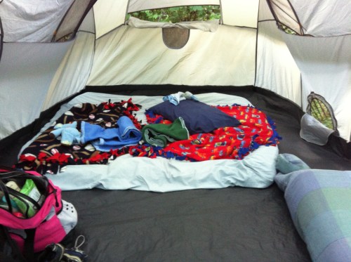 Here is our tent, pre-mess. Due to lack of space, we did not bring Noah’s pack n’ play. This was his first time not sleeping in a crib and the boys first time sleeping next to each other. It went surprisingly well. Better than I expected.