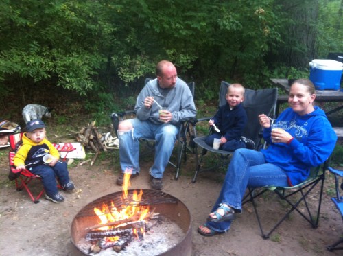 On Sunday morning, we woke up to rain. We played in the tent for a bit while the rain slowed down. In between showers, Dave and I scrambled to pack up while attempting to keep the boys entertained. We were home by mid-morning on Sunday. We had a great time and would love to go camping again…sometime.