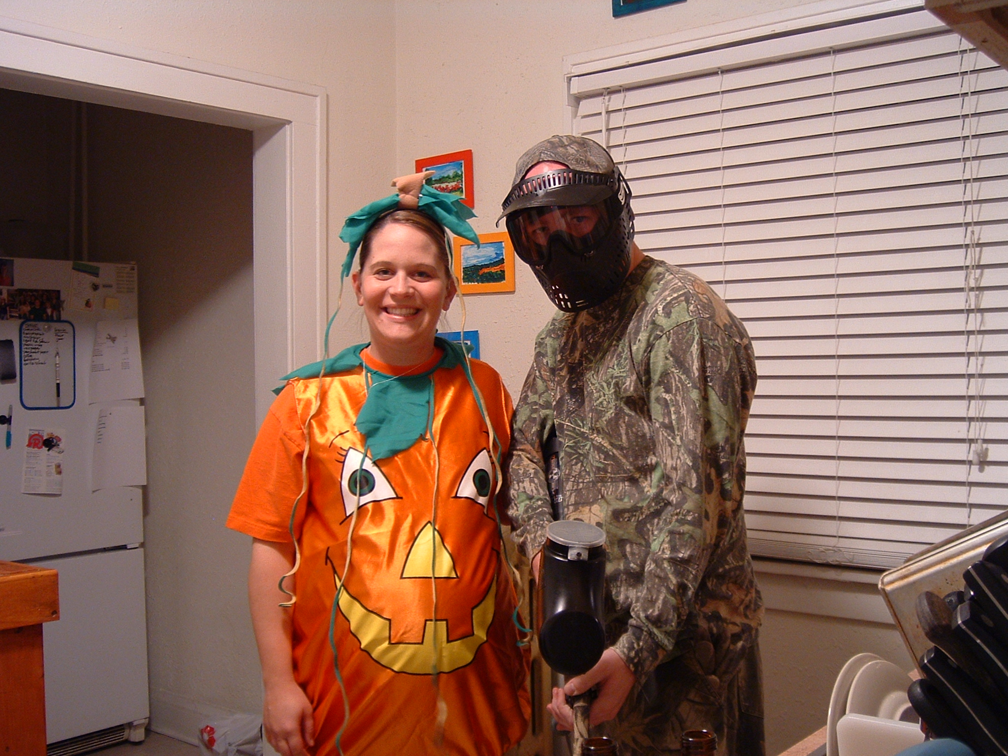 Halloween - the first time I've ever been able to naturally fill out my pumpkin costume. Dave was my personal sniper - didn't want those bunnies to be nibbling on me.