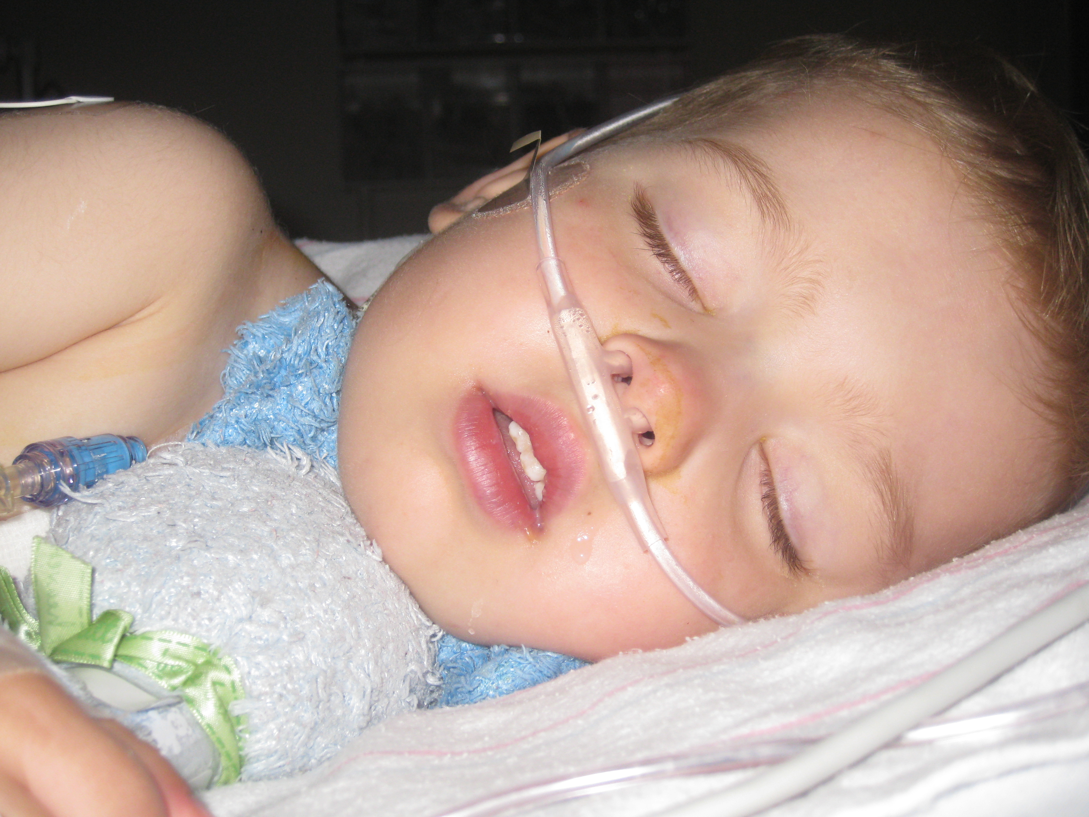 Eli had his 3rd and hopefully final, open-heart surgery on July 12, 2011. This procedure was called the “Fontan”. Here’s what Mayo Clinic as to say about the procedure, “this procedure is done between 18 months and 3 years of age. It allows the rest of the blood coming back from the body to go to the lungs. After this procedure, there’s no mixing of oxygen-rich and oxygen-poor blood in the heart, and your child’s skin will no longer look blue“. Many people commented on how pink and normal looking Eli was now.This was my view for a hours the day after surgery.