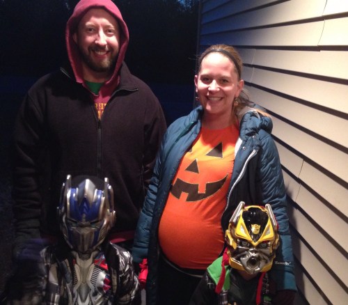 Halloween fun! The boys carved pumpkins, with Daddy’s help of course. 😄 We had an Optimus Prime, Bumblebee and Baby Pumpkin.