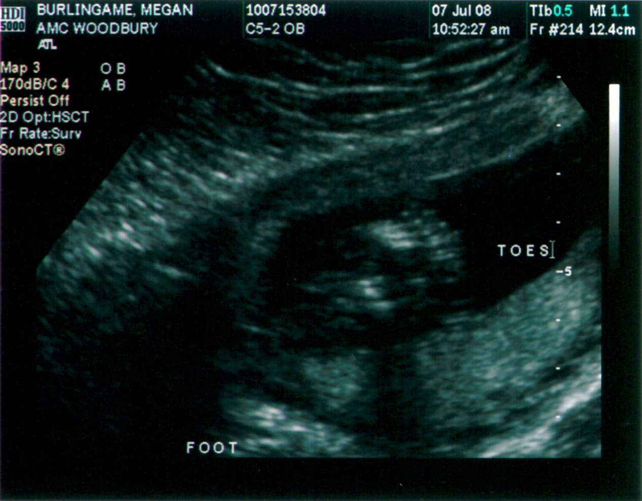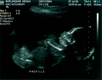 BOY!!! The B’s now have a boy to go with my brother’s girl. The ultrasound went well; the baby looked good. According to the ultrasound measurements, the computer calculated a new due date of November 12. I’m not sure if one date is more accurate than other (11/20 was the initial due date), or if it’s more of a ballpark type of thing. Either way, it’s going to be very close to hunting season (Nov. 8-16). Below are a couple of the ultrasound pics. Click the images for high-res versions.